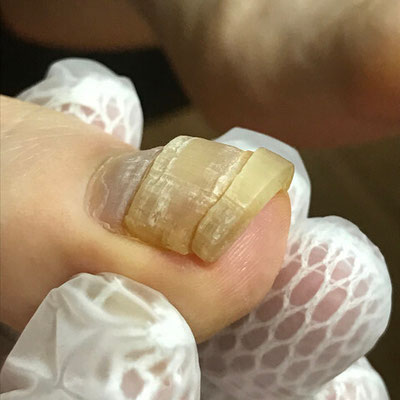 厚いお爪は施術のたび丹念に爪周囲をクリーニングし、厚みを削っていきます。