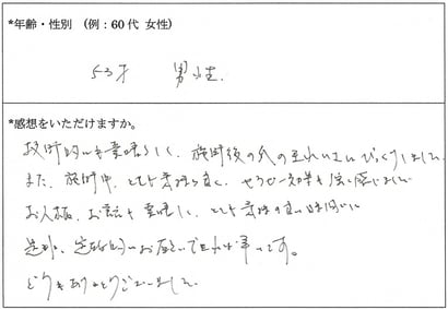 とてもていねいでキチンと説明しながら行って下さるので安心感がありました。